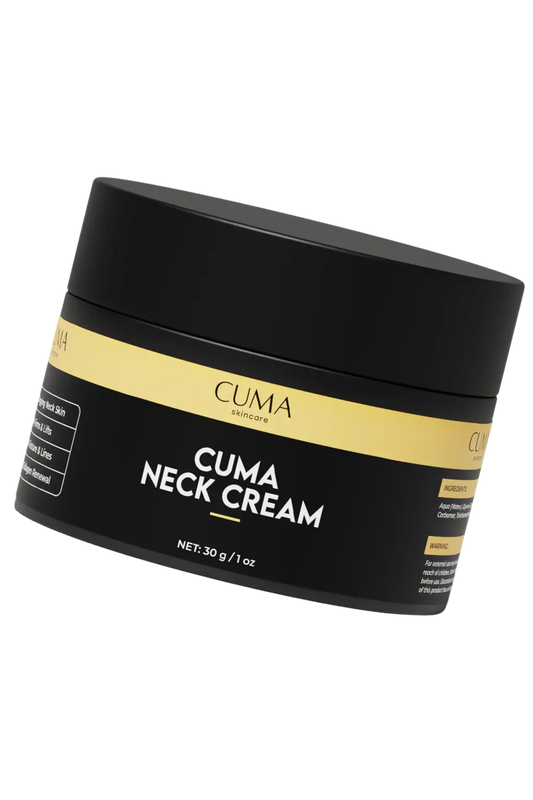 The Cuma Neck Cream helps deeply hydrate and soften the look of crepey, aging skin on the neck and jawline while supporting a smoother, firmer-looking appearance over time.