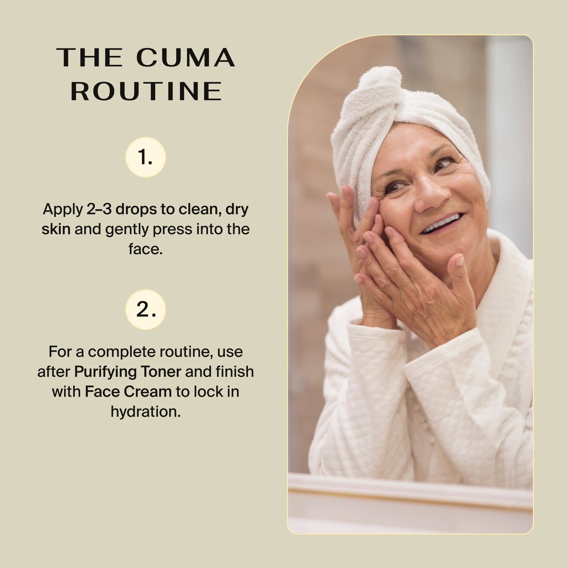 Apply 2–3 drops to clean, dry skin and gently press into the face.